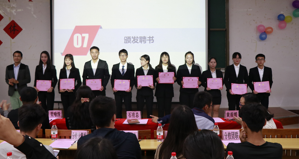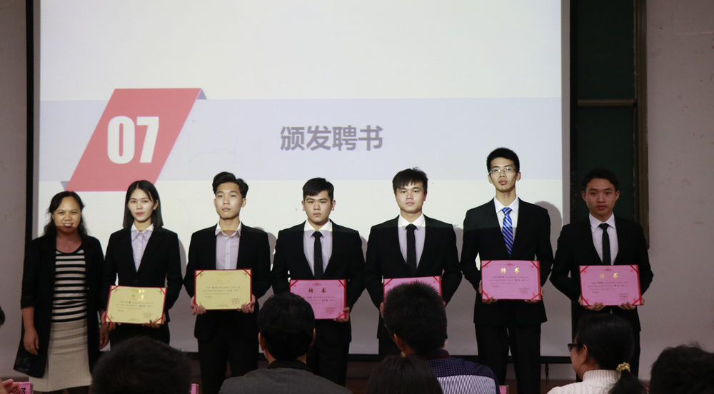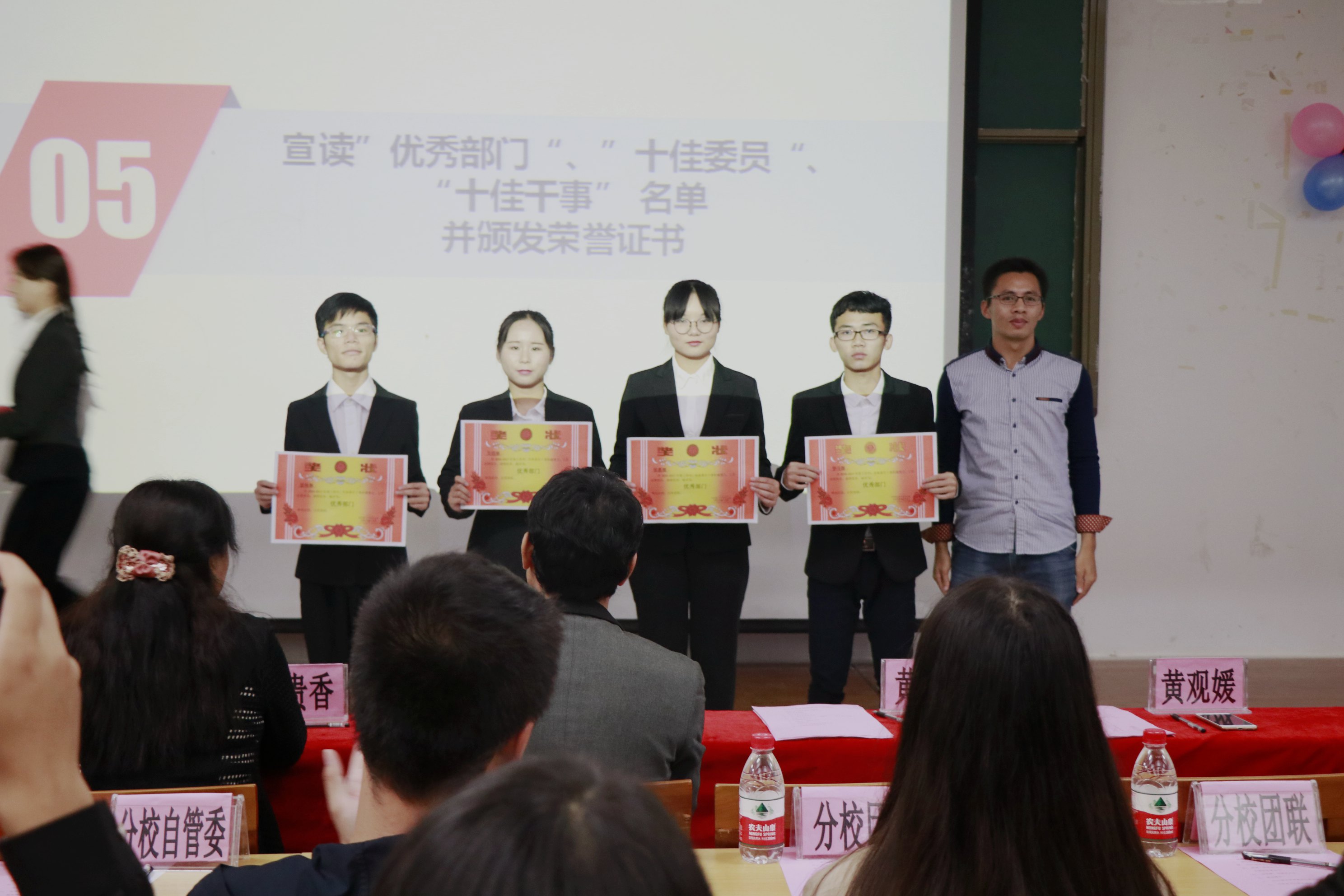 大会伊始,与会人员观看了团总支学生会一年来的精彩回顾视频,一同了解团总支学生会的工作业绩,一同感受团总支学生会的无私奉献,一同见证团总支学生会亲如一家的情谊。随后,黄运堪老师在为大会致辞中表达了对上一届团总支学生会和新媒体中心学生干部所做的努力和贡献的感谢之情,并对新一届学生干部提出了殷切期望。上届学生会主席李松林对上一届团总支学生会工作进行了回顾与总结。紧接着,何贵香主任等与会领导和嘉宾为上届主席团成员及委员颁发聘书,并为获得“优秀部门”、“十佳委员”和“十佳干事”的学生干部颁奖。陈回归同学、黄恒同学分别代表新一届团总支学生会和新媒体中心作了未来工作展望。