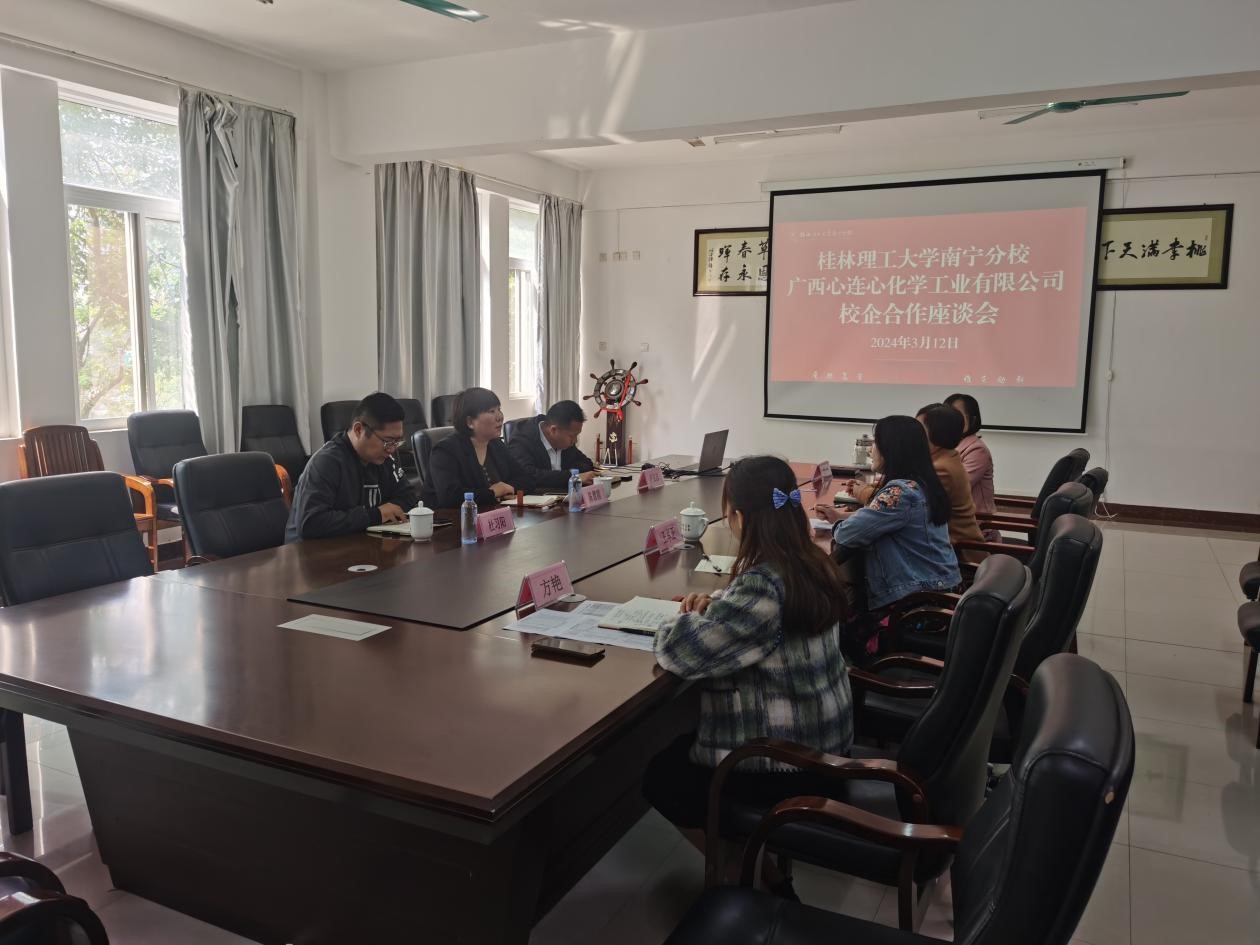 3月12日上午,我院在探源楼5207会议室与来访的广西心连心化学工业有限公司进行校企合作深入交流。英国上市公司365副校长马华菊出席会议,并与来访企业探讨具体合作事宜。教务管理部负责人及学院班子成员参加了座谈交流。