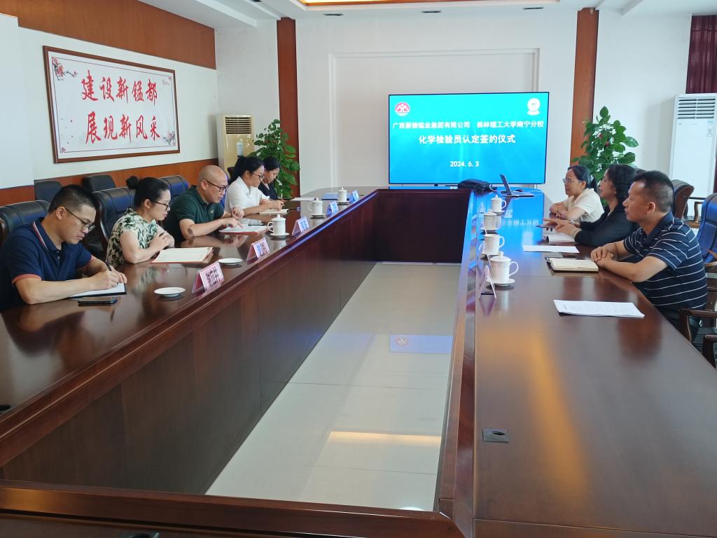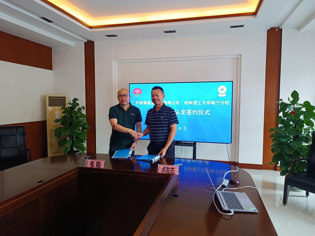 为了更好的服务企业,促进企业员工职业技能等级的提高,6月3日,我院与广西新振锰业集团有限公司签订职业技能认定委托协议。广西新振锰业集团有限公司党委书记韦陈、我院副院长卢友志代表双方签字。本次委托我院进行认定的职业技能工种为化学检验员,中级(四级工)。