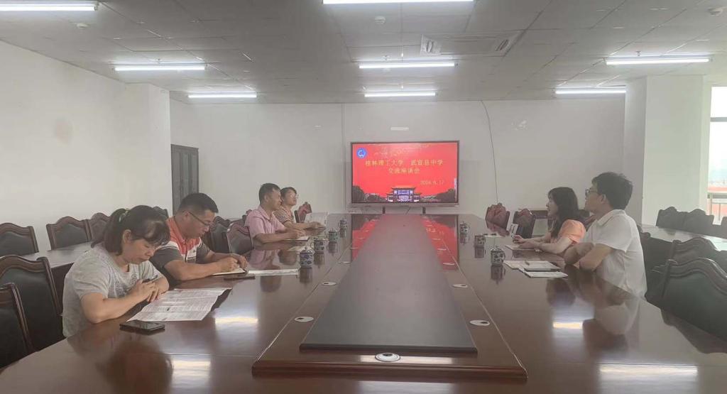 武宣中学副校长朱观添对马华菊副校长一行的到来表示热烈欢迎,介绍了武宣中学办学历史、办学理念、师资队伍建设和近年来取得的教育教学成绩,对桂林理工大学近年来的对武宣中学招生工作表示感谢。。