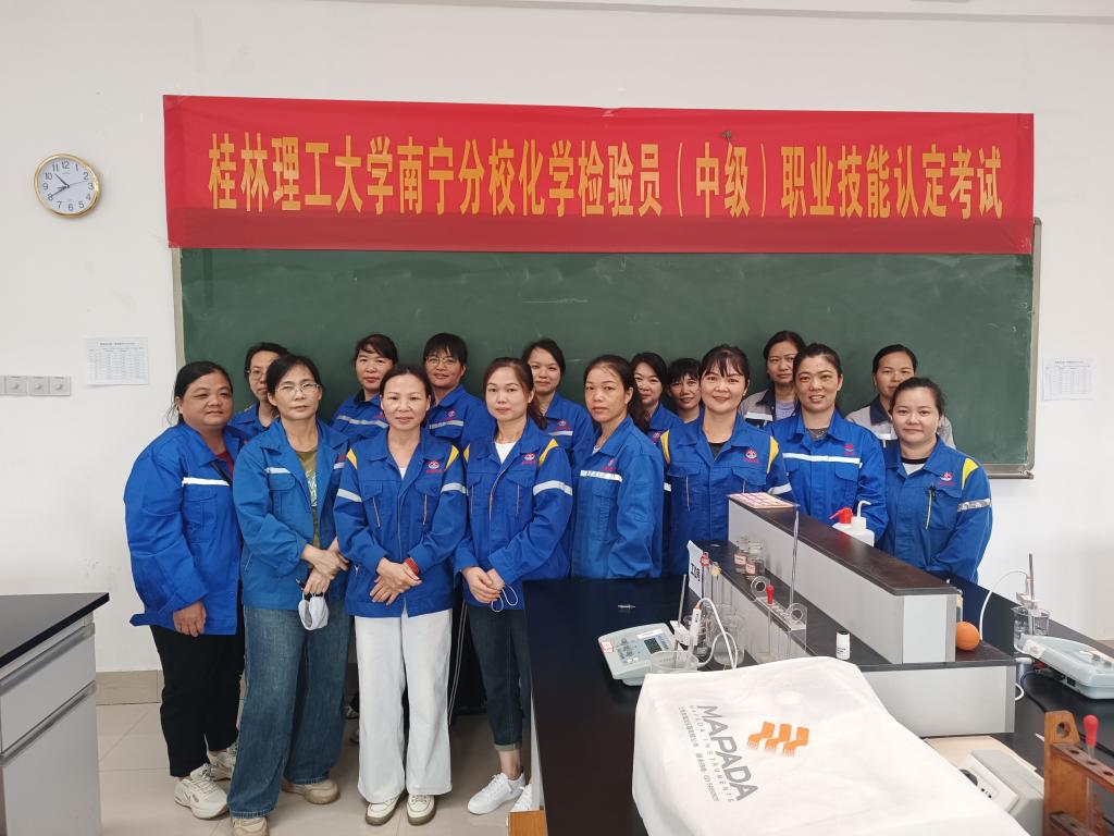 2024年第二批化学检验员职业技能等级认定考试于7月13—14日在空港校区实训楼顺利举行。本次认定考试为化学检验员四级(中级工),共有33名学员参加。这批学员来自广西新振锰业集团有限公司。认定考试分为理论考试与技能操作考试两部分。最终通过人数为31名,通过率为94%。