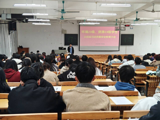 2025年1月6日下午,我院在启智楼8208召开了环境23级与资源23级认知实习动员暨安全教育大会。实习指导老师周龙、黄文富、莫福金、陆燕青、于润组织召开本次会议,辅导员刘晓艳老师、资环教研室主任孟冠军老师及资源23级1班与环境23级1、2、3、4班全体学生参加了本次会议。