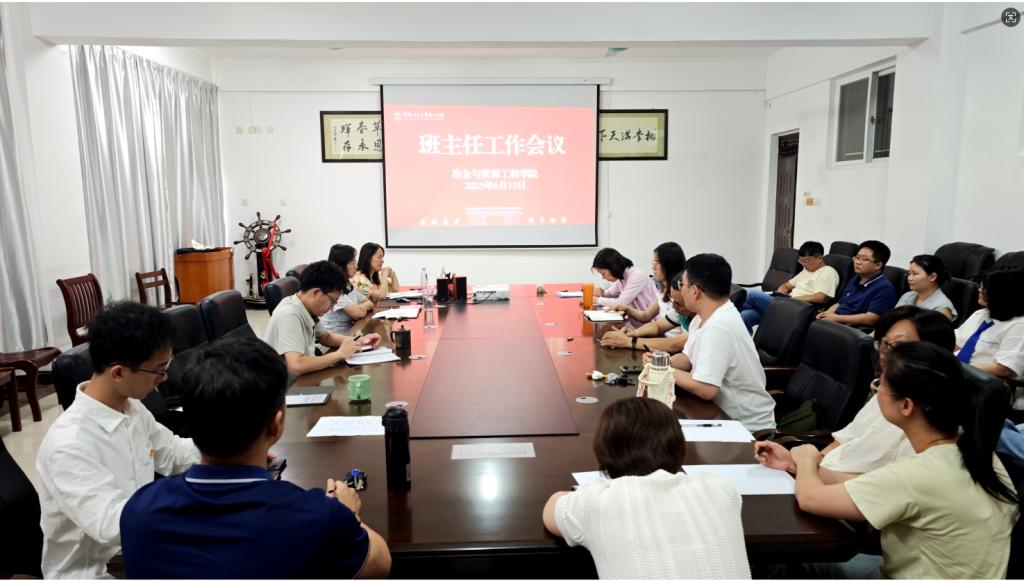 6月13日,冶金与资源工程学院在探源楼5207会议室召开全体教职工工作会议以及班主任工作专题会议,就期末教育教学、学生工作及毕业生离校相关事宜进行部署。学院院长何贵香、党委书记韦国才、党委副书记方艳出席会议,全体班主任参加会议。会议由方艳主持。