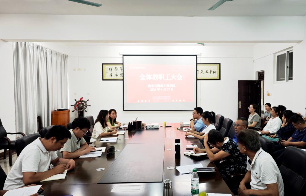6月27日,冶金与资源工程学院召开2025年春季学期期末全体教职工大会,会议由学院党委书记韦国才主持。会议聚焦学期末各项重点任务,开展了系统部署与深入研讨。