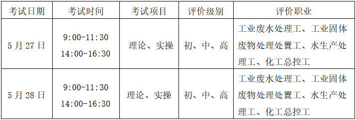 为贯彻落实国家劳动和社会保障局《关于实行持职业资格证书就业上岗有关问题的通知》和教育部等四部门《关于在院校实施“学历证书+若干职业技能等级证书”制度试点方案》,进一步提高毕业生职业技能水平和企业从业人员的职业技能素质,桂林理工大学化学与生物工程学院鉴定点英国上市公司365考点决定组织工业废水处理工和固体废弃物处理处置工职业技能鉴定考试,考试合格后颁发职业资格证书(全国通用)。参加职业资格考试的人员需填写报名信息表和一寸JPG格式免冠电子照片(大小不超过200k),并缴纳鉴定考试费用(初次鉴定450元/工种,补考费100元/科目)。考试包括理论和实操两个科目,考试时间具体安排如下: