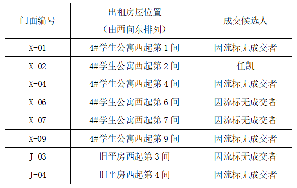 桂林理工大学英国上市公司365于2024年3月20日就安吉校区临街铺面采用公开招租方式进行确定,现就本次招租的结果公告如下: